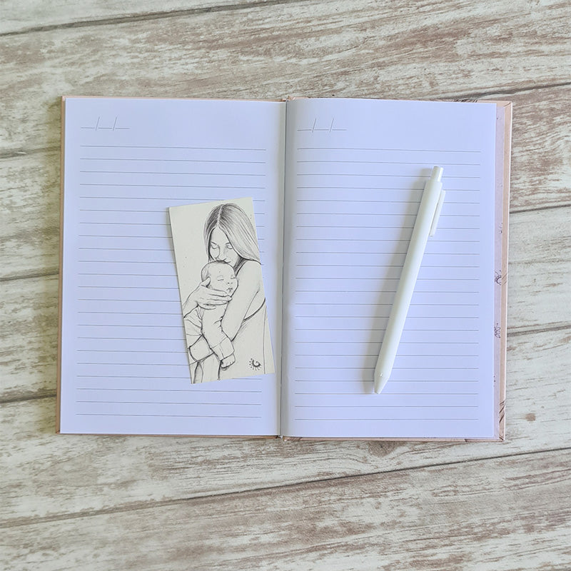 מחברת אימהות שורות בכריכה קשה, עם איור מקורי של אמא ותינוק ,מחברת שנוצרה במיוחד כדי לשמור רגעים קטנים מהתקופה הכי גדולה בחיים.
